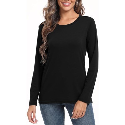 PRIMODA Women's Crew Neck Long Sleeve Shirts Basic Loose Fit Layering Tops